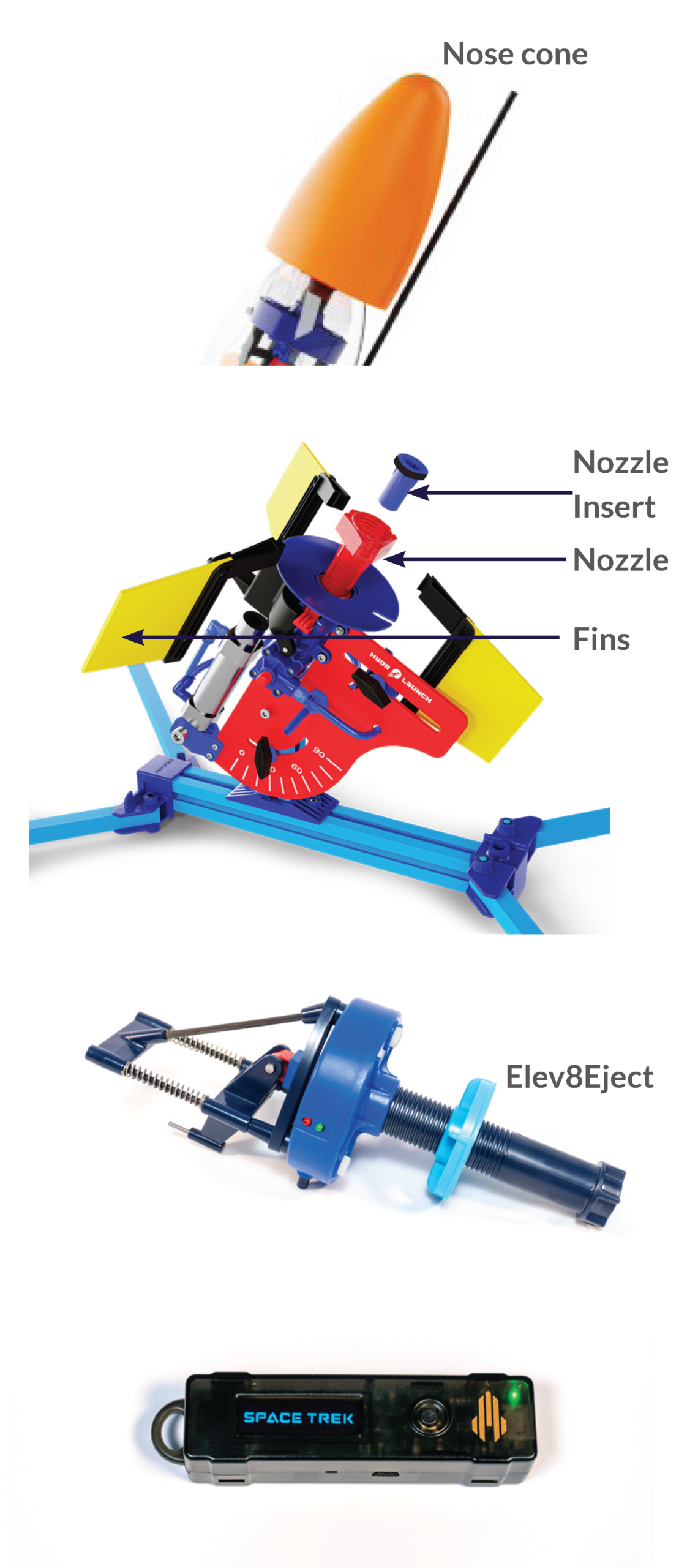 Nozzle Inserts – 8mm, 10mm and 12mm standard inserts come in your HydroLaunch® water rocket kit, enabling you to experiment with a variety of thrust profiles.