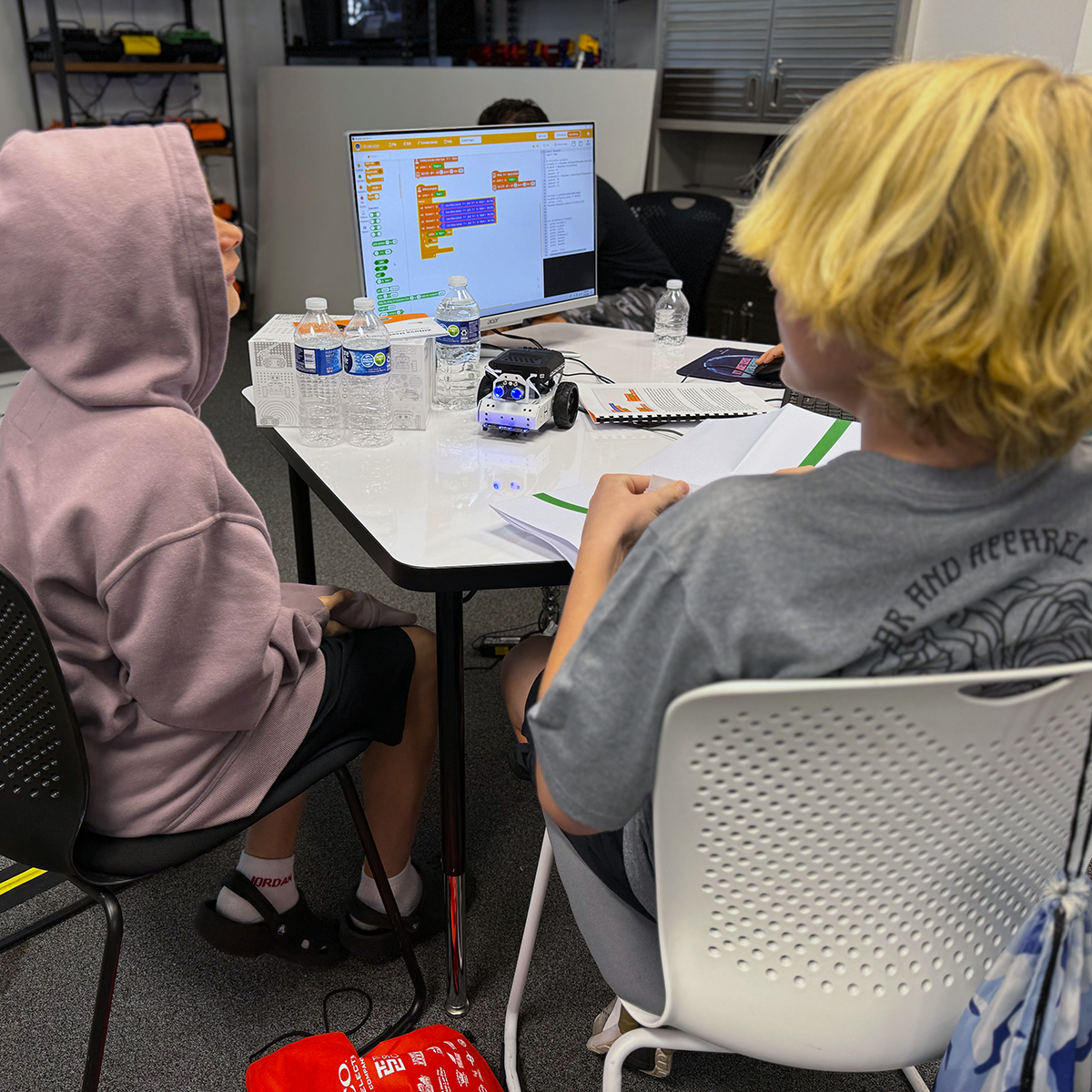 Astro Engineers is the perfect starter program for students ready to explore robotics and rocketry through hands-on missions. Camp begins with programming logic using a beginner-friendly approach, then students code their ExoNaut robots to drive linear and curvilinear paths, complete sensor-style challenges, and compete in team events.