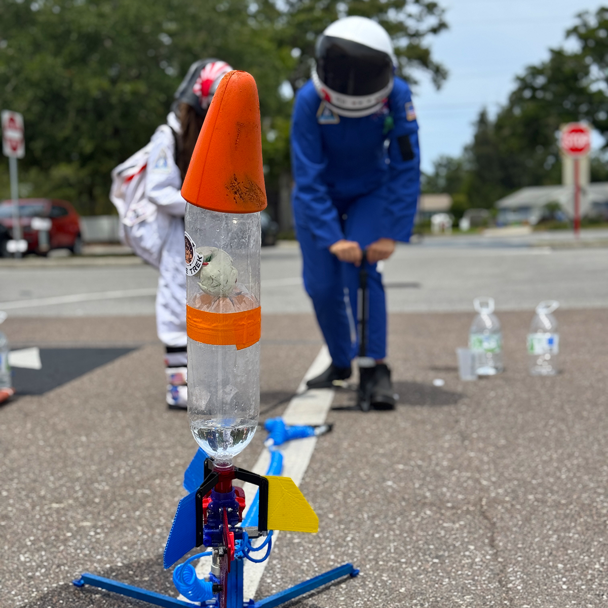 In the Robotics version, students strengthen coding skills and program ExoNaut rovers to navigate complex courses, tackle mission-style challenges, and compete as a team. In the Rocketry version, students step into launch-team roles to design and build higher-performance water rockets using custom components, apply stability and flight concepts, and improve results through structured testing. The experience ends with mission debriefs, performance review, and graduation recognition.